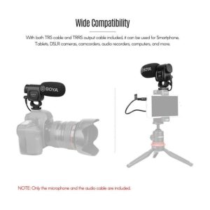 - boya by-Bm3011, videoların ses kalitesini temel alarak artırabilen kompakt ve birçok cihaza uyumlu condenser shotgun mikrofondur. Paket içerisindeki trs kablo ile dslr, kamera, ses kayıt cihazı v.B. Cihazlara